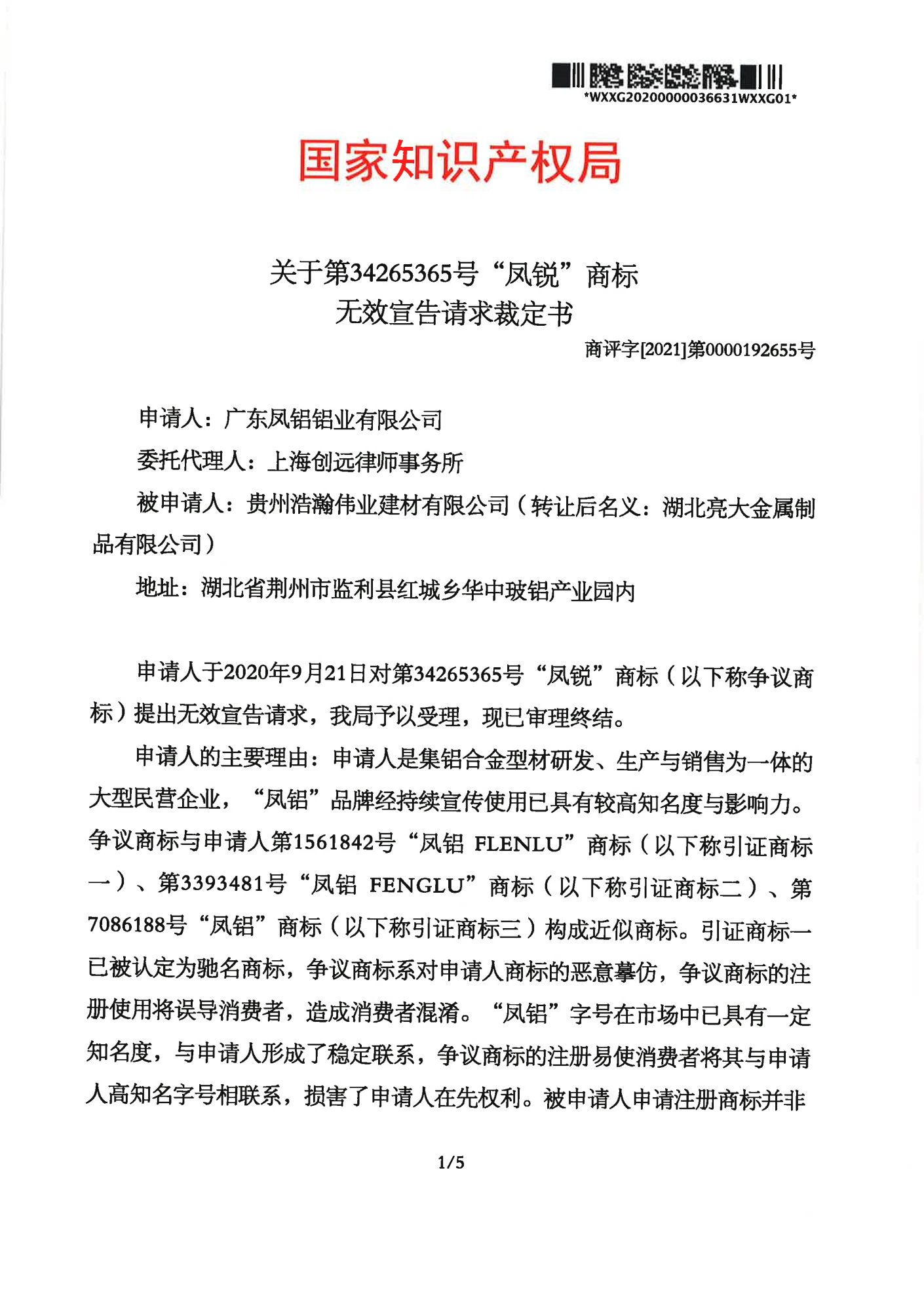 朝阳辉知队 | 国家知识产权局:“凤锐”商标无效