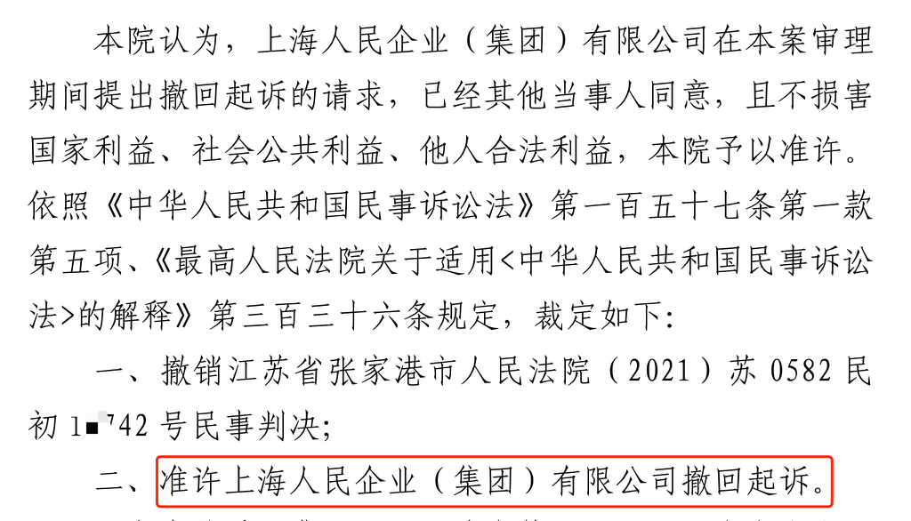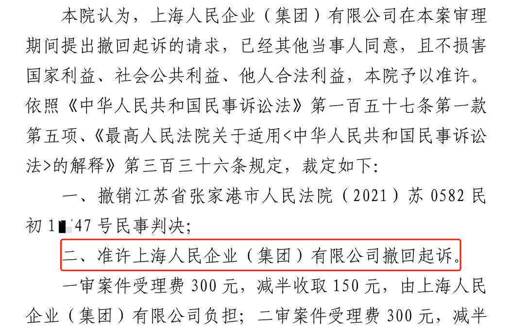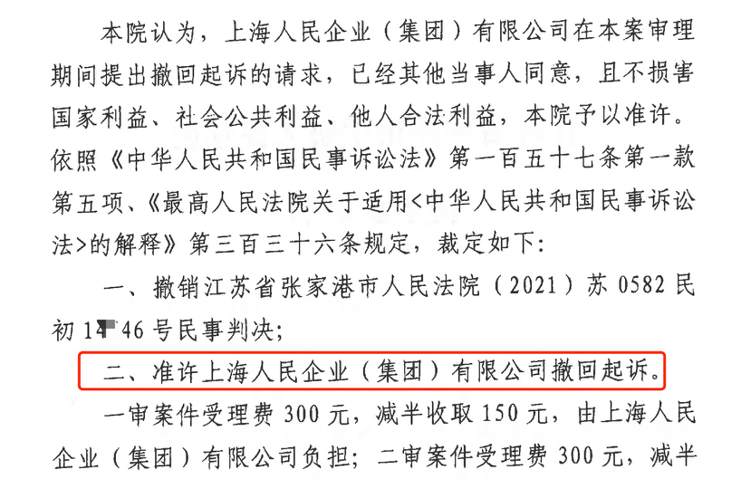 朝阳胜诉佳讯 | 人民企业系列案苏州六案上海人民公司撤诉